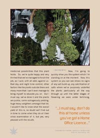 The first part of the book is an extensive documented graphical pictorial grow guide based on a 6 hour DVD set made whilst working on behalf of the University of London. This University holds a Home Office License to cultivate cannabis for medical research. The doctors, without sounding cruel, are not botanically blessed with green fingers so some 5 years ago we were called upon to help design, construct, and install a fully operational hydroponics grow room. We were then asked to help grow top quality cannabis for the University to ensure high active ingredients for their medical studies. As well as educating them on the finer art of growing plants hydroponically, we got to test certain methods and techniques, shifting the shit from shinola so we got to expose the fact from fiction.